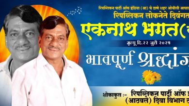 रिपब्लिकन लोकनेते दिवंगत एकनाथ भगत साहेब यांचे जाण्याने RPI-A व बौद्ध समाजाची दिव्यात मोठी हाणी – सौरव आढांगळे रिपब्लिकन पक्षाचे…